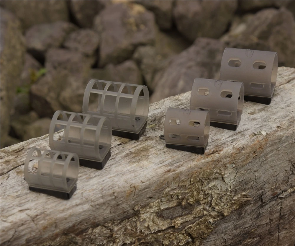 This Plastic Cage Feeder combines the features of a closed plastic feeder and a metal cage feeder. Thanks to the open design at the top, the bait will release quickly when moved. However, the closed sides reduce the release of bait when sinking through the water and when landing on the spot. The tapered shape of the weight with the center of gravity pointing downwards ensures the feeders cast very well. A robust metal eye is molded within the weight. The Plastic Cage Feeders are available in Small, Medium and Large format in weights ranging from 10 to 50g.