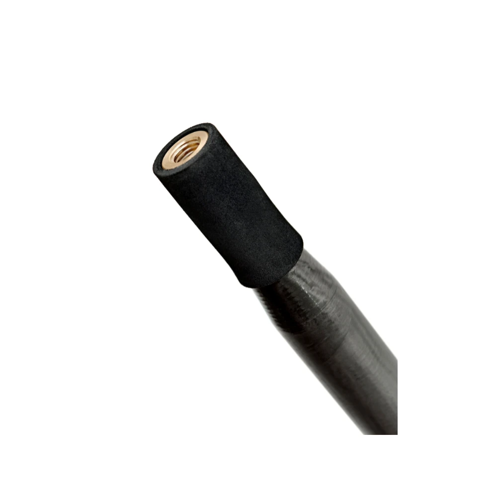 This three piece handle offers two length options thanks to a thread on the tip and mid section. Additional strengthening