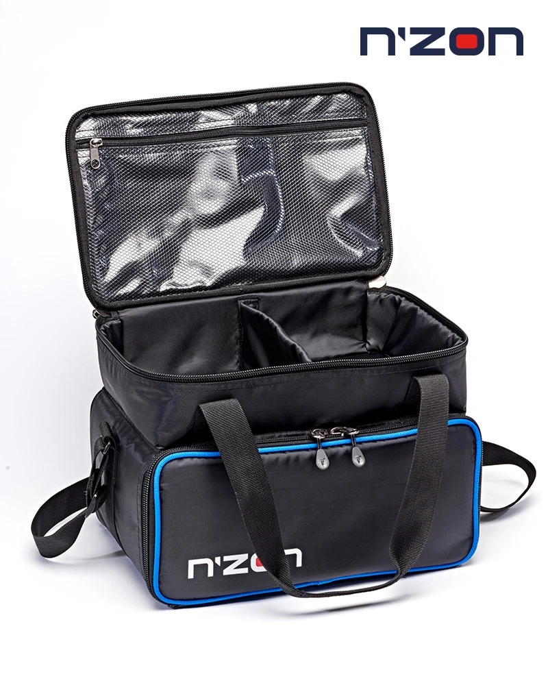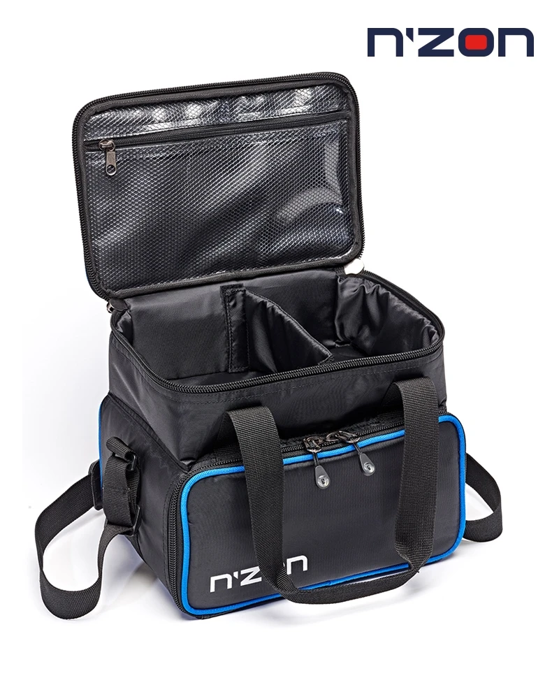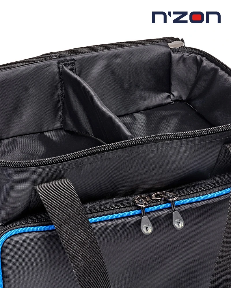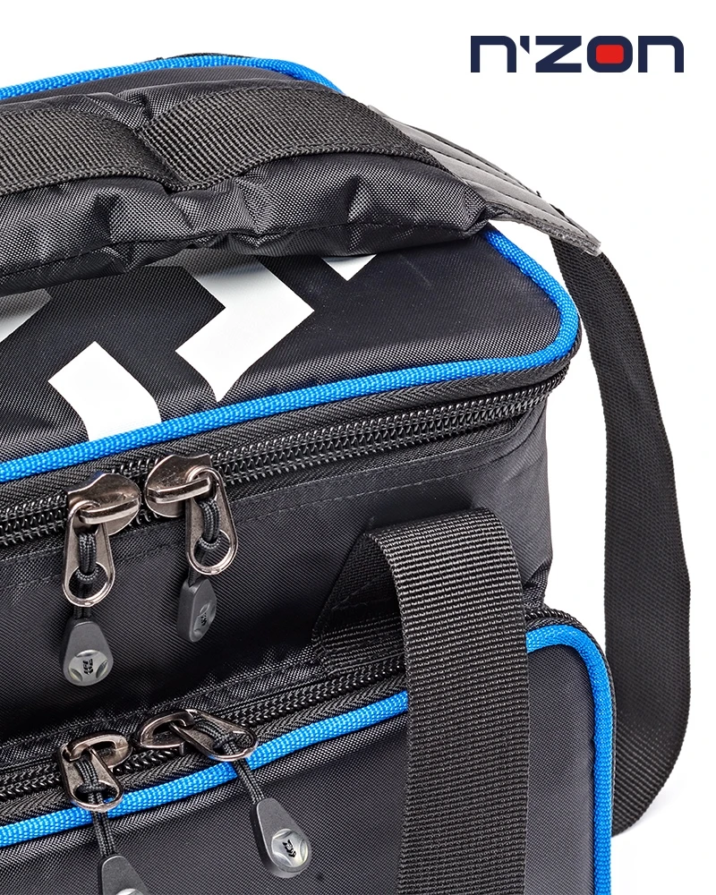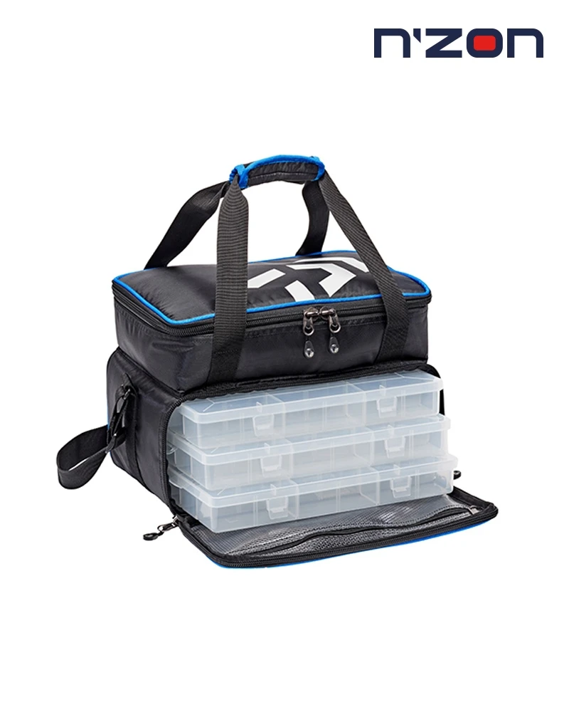 This two-layer case offers front access to three medium tackle boxes via zip round flap, which itself features and slim zippered inside pocket. The upper section is padded and has a Velcro adjustable partition and slim zippered inside pocket on the lid. It also features a reinforced base, adjustable padded should strap and Velcro closure carry handles