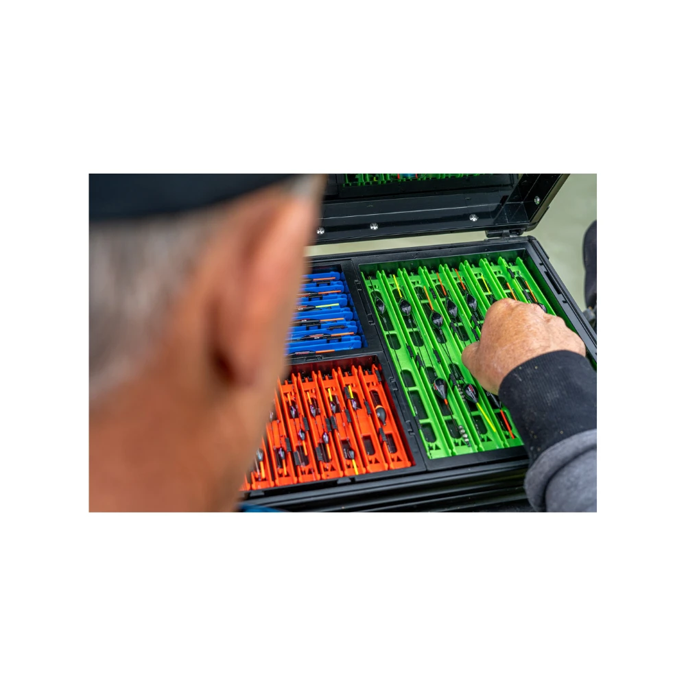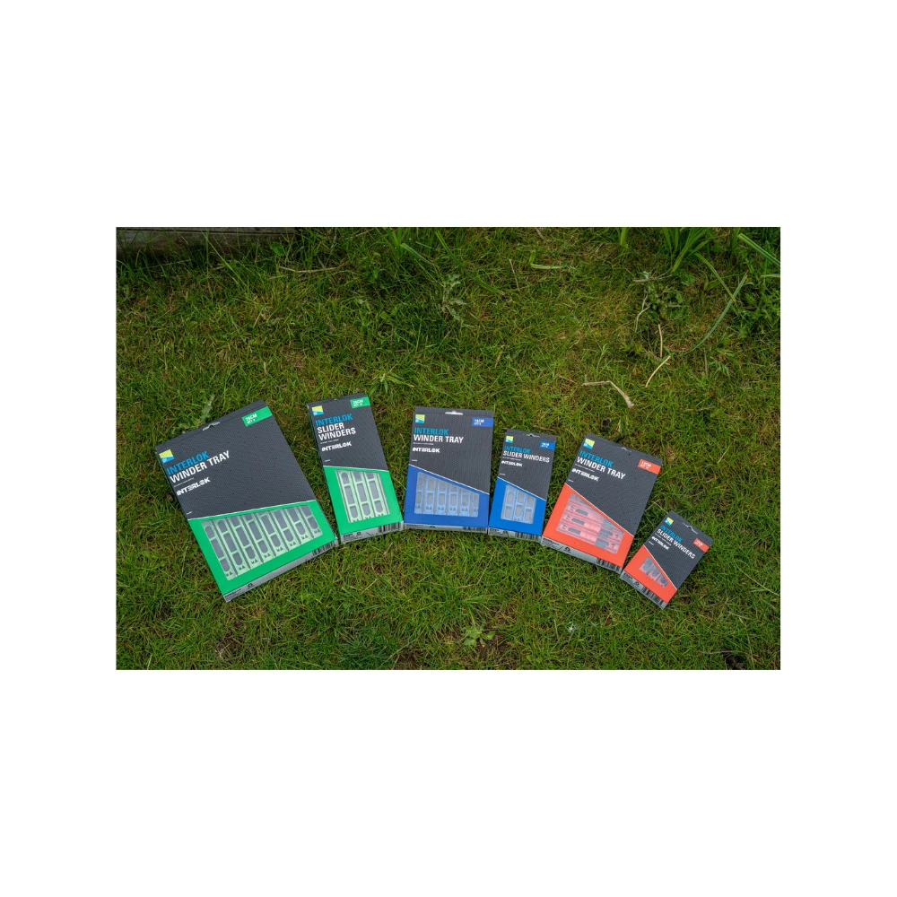 Preston’s Interlok winder trays are a clever modular system designed to fit perfectly inside an Absolute, or Inception shallow tray unit. With three different sized options available to cope with differing sizes of winders. You can pick and choose whatever combination of trays that suit the floats and rigs you prefer to use. The 26cm tray takes up 50% capacity of a seatbox unit, while the 13cm and 18cm Tray’s take up 25% each. Any combinations adding up to 100% will fill an Absolute or Inception shallow tray unit.Â