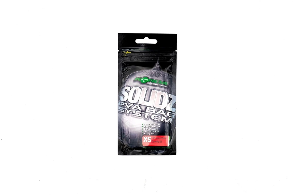 Twelve years ago Korda launched the first ever PVA Funnelweb system and this product has stood the test of time. Yet again we have taken PVA to another level with our Solidz range of PVA bags. Korda Solidz are designed to deliver a compact package of bait at any range and will be a huge hit with all you solid-bag users. Some of the countries most successful carp anglers such as Ian Poole and Gaz Fareham swear by them! Manufactured at Korda to a stringent specification using the highest-grade film available, Solidz have a virtually neutral PH, melt rapidly and are extremely robust. They are absolutely ideal for distance casting, due to the soild, extra tough base. There is zero residue when melting, they are completely aroma free and obviously biodegradable. There is a range of different sizes to suit every occasion and whats more, they are particularly easy to load due to the unique bag loader that comes complete with every pack. Simply load up, construct the bag and catch some carp!