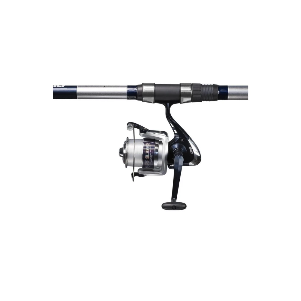 The Shakespeare SALT Surf Slayer are ready-to-fish combos for the anglers who would like to give surfcasting a try without spending a large amount of money. The strong glass fiber rod designs are especially developed to reach fish out in and even behind the surf. Equipped with stainless steel guides and anti-slip handles, these combos are made to catch all kind of fish like flatfish, cod, smoothhounds, pollock, etc. The strong graphite reel is fully spooled with good quality mono to make sure you will be able to cast really far and also perfectly fight all the fish. To make these combos complete, we have included a full tacklebox so you can directly start fishing.