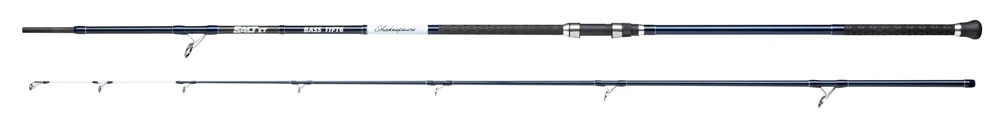 The Shakespeare SALT XT Bass is designed to give bass anglers the maximum feeling and bite detection while using a super slim and lightweight blank for long holding comfort. The high grade carbon blank has a fast taper and the power flow is designed in such a way that you can react as quickly as possible on a bite to achieve a higher hook-up ratio. Because of the 2-4oz rating and length of 11ft6, the rod is perfect for estuary, surf and rough ground bass applications. To ensure maximum casting properties, the rod has an anti-slip X-wrap shrink butt and rubber bulb to make long fishing sessions as comfortable as possible. As well, due to the special SW proof K-type guides, the line cannot get entangled around the guides anymore, preventing knots or breakages.
