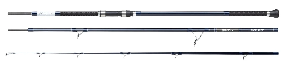 The Shakespeare SALT XT MPV is especially designed to be as versatile as possible and is designed for sea anglers who require a single rod to cover a wide range of sea applications. Due to the high grade carbon with fast taper and progressive transfer of power from the upper tip and med section, the rod can be used for float fishing from the rocks or piers. As well it is perfect for spinning for bass, pollock or mackerel. Due to the length it is also very suitable for light beach ledgering. Because of the special SW proof K-type guides, the line cannot get entangled around the guides anymore, preventing knots or breakages. So simply a perfect rod for the most versatile angler who is looking for a rod that can handle nearly every situation.