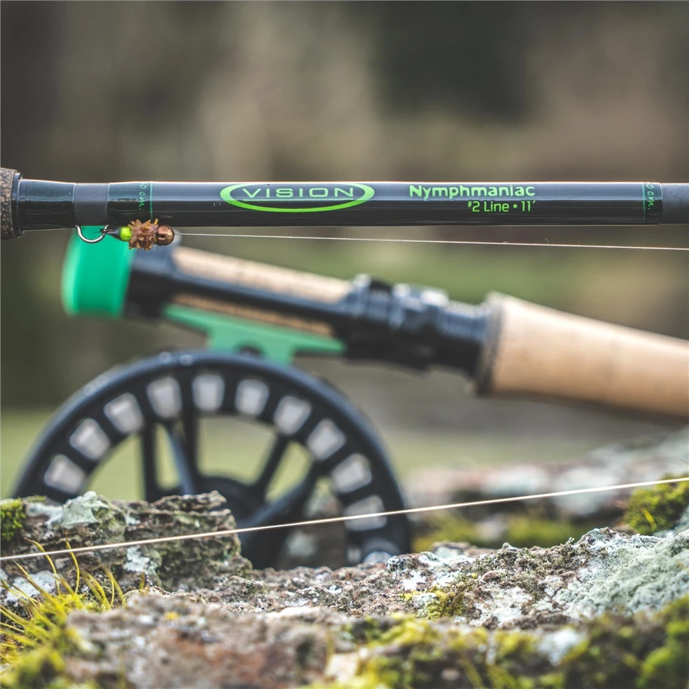 “Nymphmaniac meets the requirements of the most demanding anglers in a reasonable price range. Everything on these rods are built with the intended purpose in mind. These have been designed to be as light and as easy to handle as possible. The blank will stop like hitting a wall without too much vibration when casting which is extremely important to sustain a proper contact and feel for light nymphs. New and modern nymph rods have enough power in the tip so hooking a fish is effortless but at the same time bend enough when a fish is making sudden movements when fighting it. Also fighting a bigger fish is not a problem with the power coming from the butt section of the rod. The perfect nymph fishing setup is complete with a light reel and the Vision Ultra Light Nymph-line.”